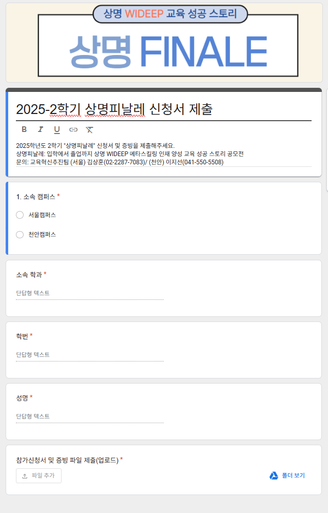 - 2025-2학기 「상명 피날레」 참여 공모 안내